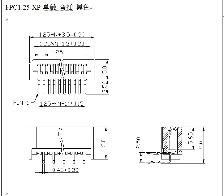 產品類型 FPC1.25-XP 間距 1.25mm