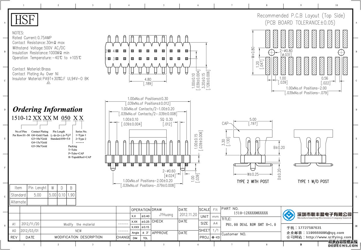 產品分類:排針連接器 產品規格:1.0 MM 單層雙排 180 貼片式 排針 供應商 技術參數:額定電流:0.75amp電流電阻:20m最大絕緣電阻:1000m承受電壓:AC 500V /分鐘工作溫度:40﹣℃+ 105℃接