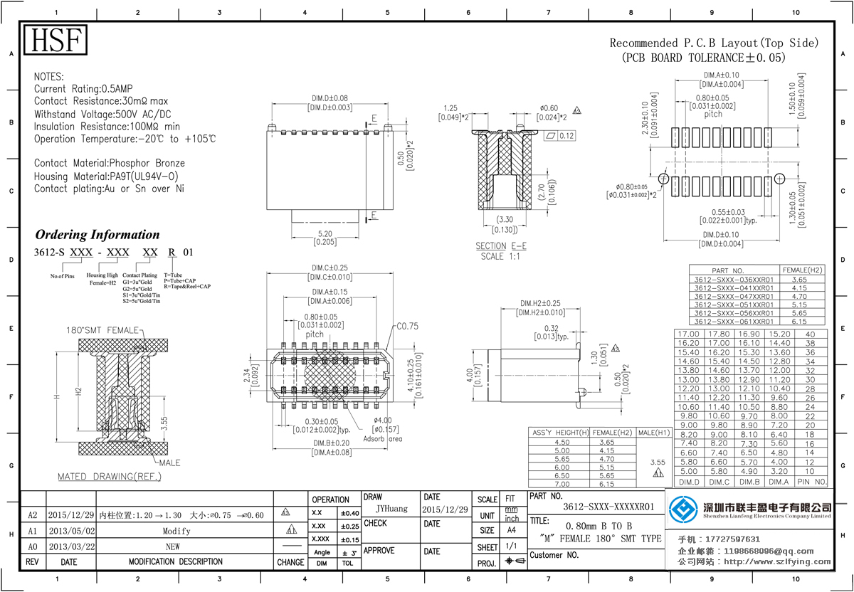 產(chǎn)品分類:Board To Board 連接器 產(chǎn)品型號(hào):0.8MM 母座 單槽結(jié)構(gòu) Board To Board聯(lián)豐盈 技術(shù)參數(shù):額定電流:0.5amp電流電阻:20m最大絕緣電阻:100m承受電壓:AC 500V /分鐘工作溫度:20﹣℃+ 1